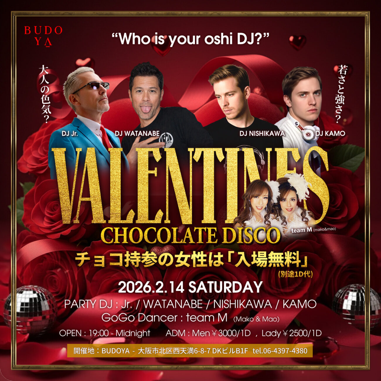 PRICEM¥3000- 1d L¥2500- 1dチョコレート持参の女性入場無料(要d)